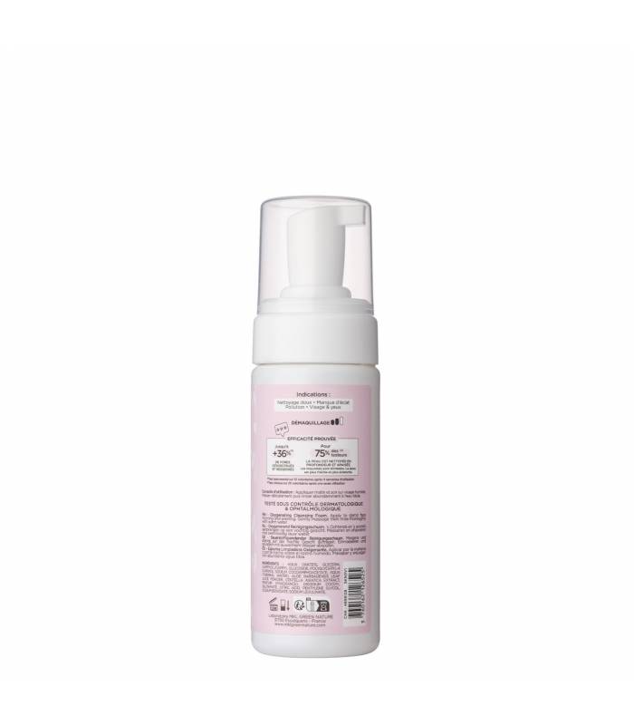 Our foam cleanses and soothes sensitive skin, effectively removing make-up while offering a sensation of lightness and comfort. Suitable for daily use, it restores radiance and vitality to dull complexions while eliminating impurities caused by pollution.