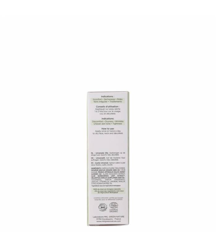 Our 100% natural Universal Oil offers an immediate sensation of comfort. Recognized for its repairing, anti-wrinkle and unifying properties, it nourishes, soothes and protects the skin.