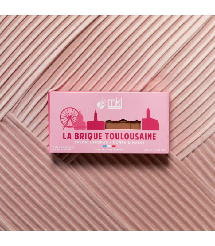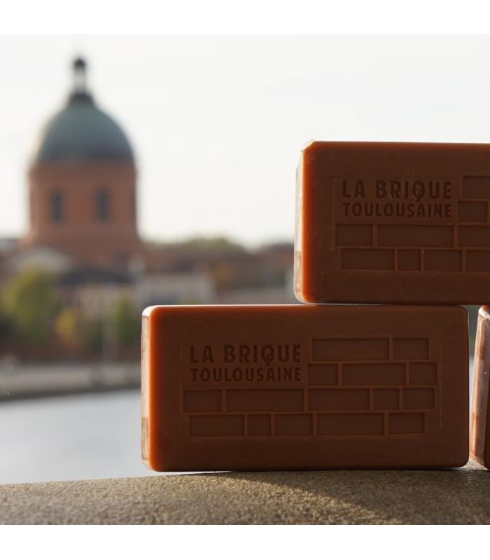 Discover La Brique Toulousaine, the soap that celebrates the pink bricks of our favorite city! It gently cleanses the skin, leaving it fresh and delicately scented. A piece of Occitanie in your bathroom!