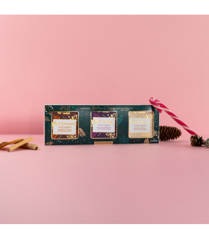 Découvrez en exclusivité nos trois savons solides de Noël. Leur mousse généreuse laissera votre peau subtilement parfumée, pour une expérience magique !