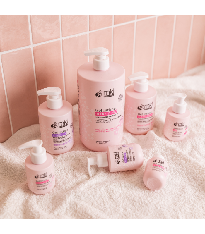 Découvrez notre Gel intime ultra-doux alliant prébiotiques et acide lactique, idéal pour les muqueuses sensibles. Il apaise et respecte l’équilibre intime assurant un confort au quotidien ! Testé sous contrôle gynécologique. Flacon pompe : 100ML