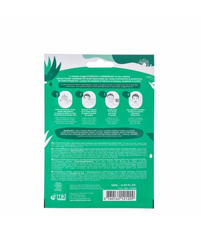 En quelques minutes prenez soin de votre peau grâce aux concentrés d'actifs. L'utilisation de notre masque visage HYDRATANT & REGENERANT à l'Acide Hyaluronique et à l'Huile d'Argan BIO permet à la peau d'être intensément nourrie et relipidée.
