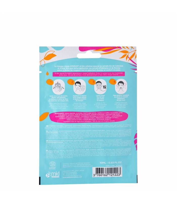 En quelques minutes prenez soin de votre peau grâce aux concentrés d'actifs ! Découvrez notre masque visage APAISANT à l'Aloe Vera BIO, au Calendula BIO, et à l'Edelweiss des Alpes BIO permet à la peau de retrouver douceur et souplesse.