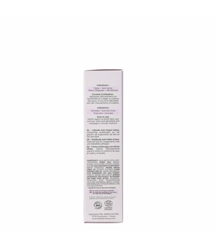 Optez pour notre Crème Anti-rides Liftante, composée à 99% d’ingrédients d’origine naturelle. Grâce à l’action combinée de l’Acide Hyaluronique et de l’Hydrolat de Rose Bio, elle hydrate, nourrit intensément et réduit visiblement les rides installées pour une peau plus lisse, plus ferme et un teint éclatant.